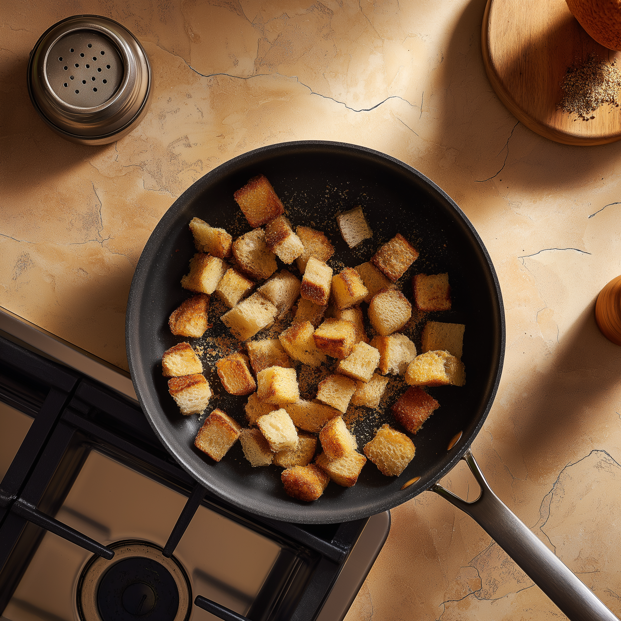 Forget the bagged stuff. These stove-top croutons are crunchy, cheesy and kissed with heat.